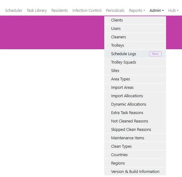 Client Managers will see a new menu item called “Schedule Logs” under the Admin dropdown